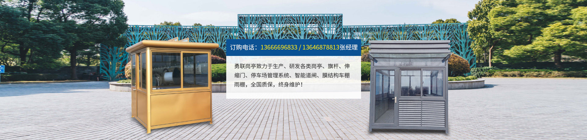 杭州勇聯裝飾工程有限公司多年來專業從事于各種崗亭、膜結構車棚、金屬制品的研發、設計、生產、銷售、施工為一體的綜合性企業。本公司產品主要有:鋼結構崗亭、交通崗亭、治安崗亭、收費崗亭、警務崗亭、保安崗亭、城管崗亭、移動廁所、售票亭、售貨亭、金屬雕花板崗亭、書報信息亭、站臺;膜結構看臺、膜結構車棚、體育場膜結構、收費站膜結構、景觀膜結構、膜結構屋頂、出入口膜結構等工程等。